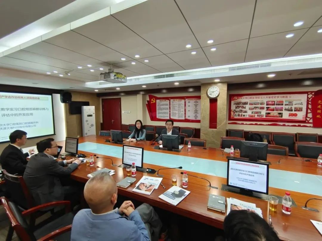 2023年4月24日,在这个春光明媚的日子里,北京大学口腔医院(北大口腔)与天津天堰科技股份有限公司(天堰科技)召开“虚拟仿真在教学实习口腔局部麻醉训练与评估中的开发应用”项目启动会。北大口腔副院长李铁军、中华口腔医学会副秘书长刘宏伟、北大口腔教育处长董美丽、虚拟仿真教研室主任侯建霞、口腔颌面外科副主任贺洋、天堰科技总经理刘雁飞、天堰科技口腔事业部总经理景颖等人出席,在项目总负责人崔念晖主任主持下,双方展开了热烈而有成效的会晤,确定该项目正式启动。